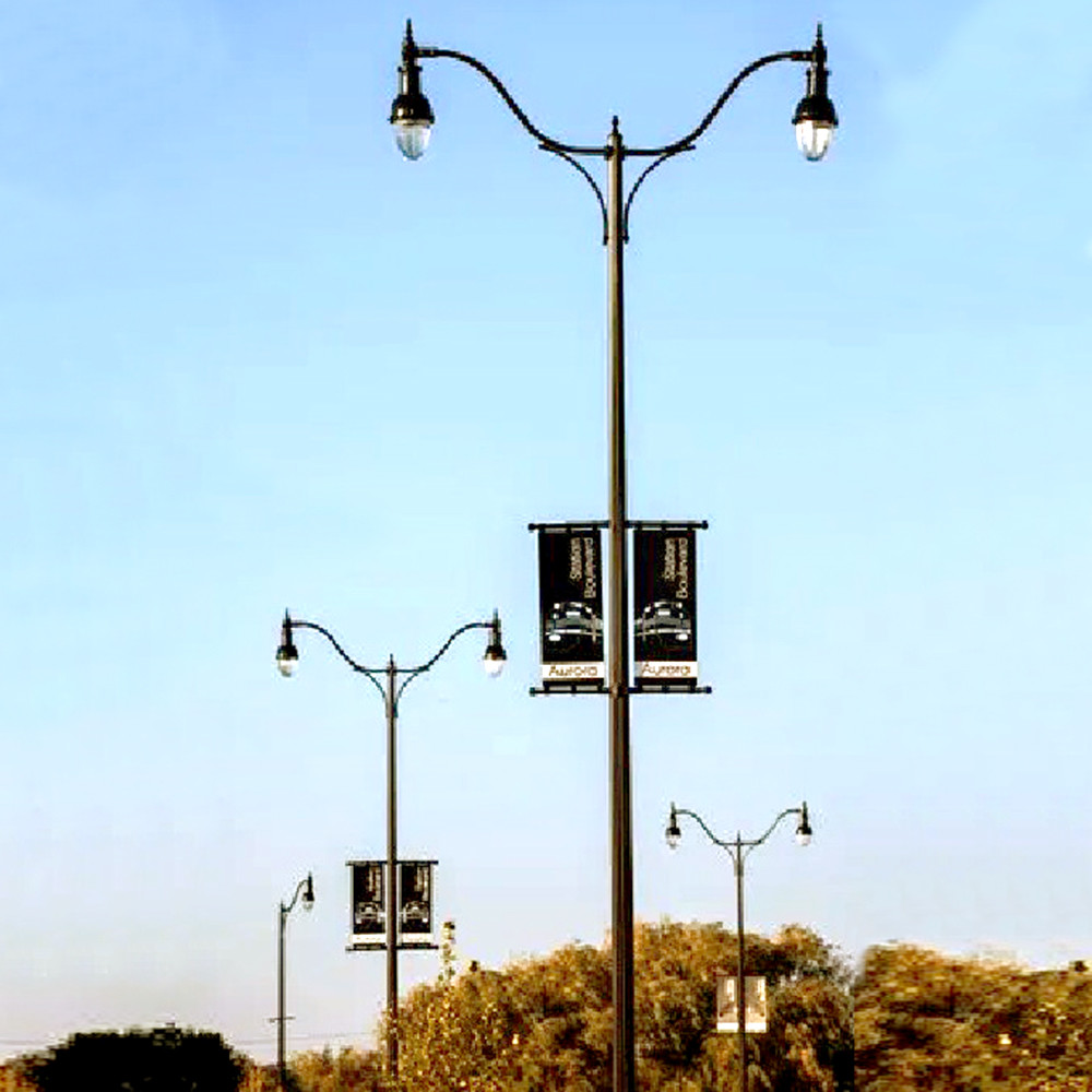8-m-konischerStahlstraßenlaternePfostenmitdoppeltenArmklammern